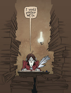Scriveners are sometimes called Scribes or Bards (in the master poet and storyteller sense not the Sister Golden Hair sense) and have the ability to Enchant a number of times per day equal to their level. Scriveners possess no unique magical aptitude and acquire their abilities through repetition over a long time. Eventually, they know certain stories, jokes, curses, legends, and riddles inside and out.
